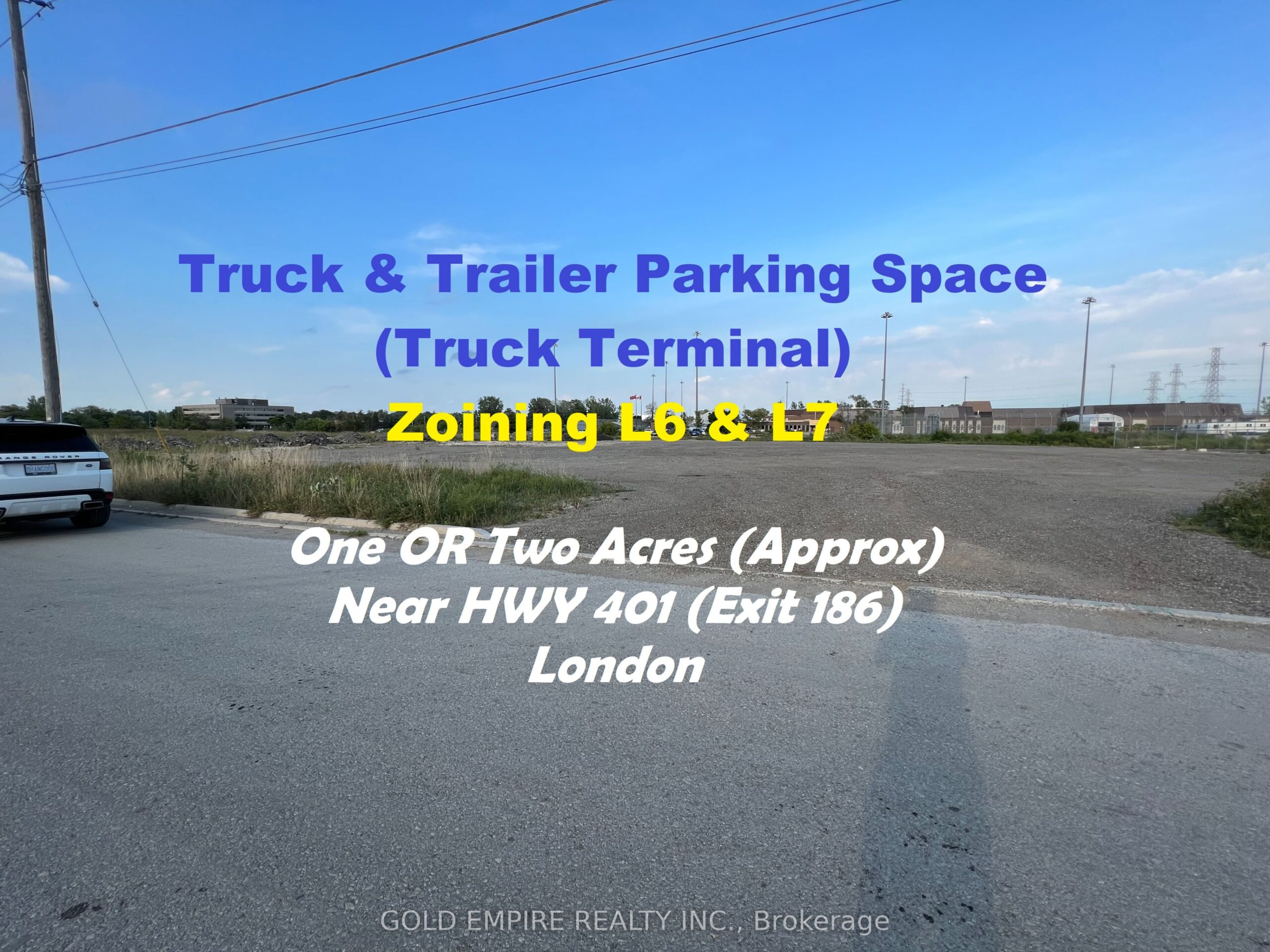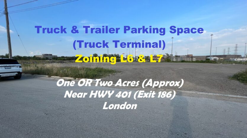 [property_description]Truck Terminal/ Truck yard Available for Lease Near Hwy 401 !!! Own Private Fence & gate at Affordable Price. The Zoning (Light Industrial (LI 6 & LI7) allow many Usages, But Not Limited to Building or contracting establishments, Storage depots, Terminal centers, Transport terminals. Automobile body shops, Automobile repair garages, Truck sales and service establishments (Z-1-051390), Custom workshops (Z-1-051390), Tow Truck Business (Z.-1-223025) . The Perfect Location Near Wellington Rd/Exeter/ Meg Rd. Nearby Locations are White Oak Mall/ Middleton Subdivision/ Lambeth, Exit 186 (Wellington Rd) of Hwy 401 and Wonderland Exit from Hwy 402. Hurry up!!!!!!This is a rare opportunity in London.[/property_description]