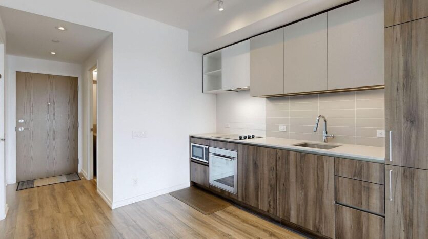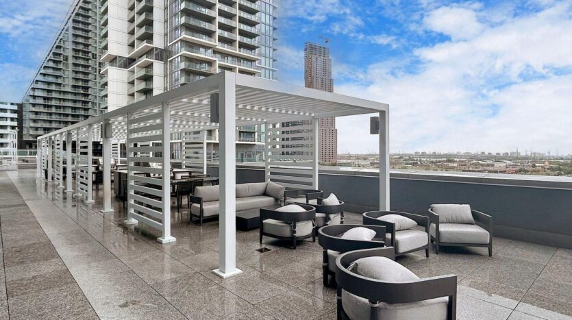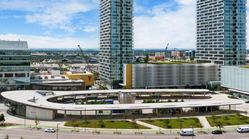 Lease this Spacious 1 Bed +Den condo in high-demand VMC! Large den with a door is perfect as a Second bedroom or office. Practical open-concept layout with sleek laminate flooring, full-Size windows, and a modern kitchen with quartz countertops and built-in appliances. Two full bathrooms offer stone vanities, a deep tub, and one glass-panel Shower. Large balcony with clear South views towards downtown Toronto. Unbeatable location! Steps from VMC TTC Subway, Bus Terminal, Hwy 7 Rapid way and easy access to Hwy 400, 401 & 407. Minutes to York University, UofT, Vaughan Mills, Yorkdale, and restaurant/entertainment district! Premium amenities include Hermes decorated lobby with 24/7 concierge, indoor pool, gym with running track, business centre, party room, theatre, and BBQ terrace. Walking distance to YMCA gym & daycare, Shops, banks, cafes, and parks. Storage locker is included