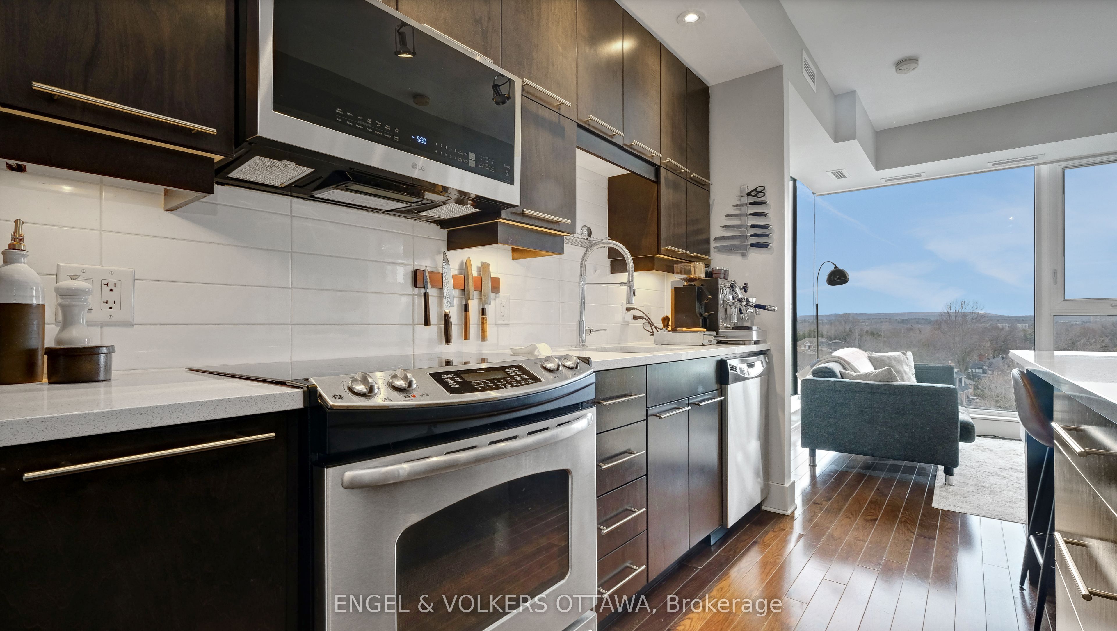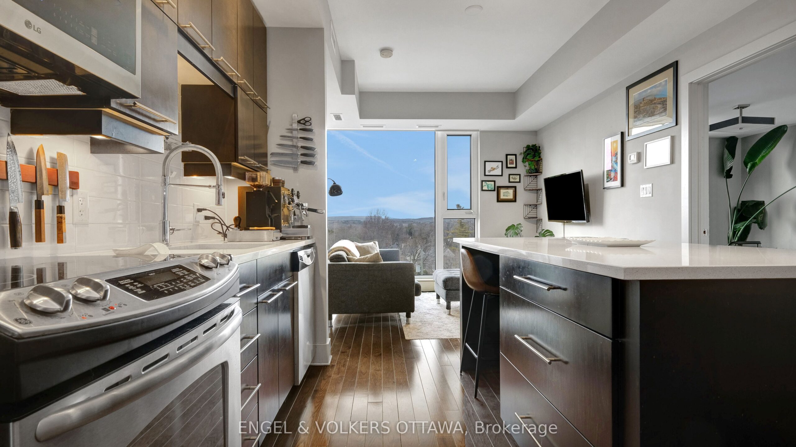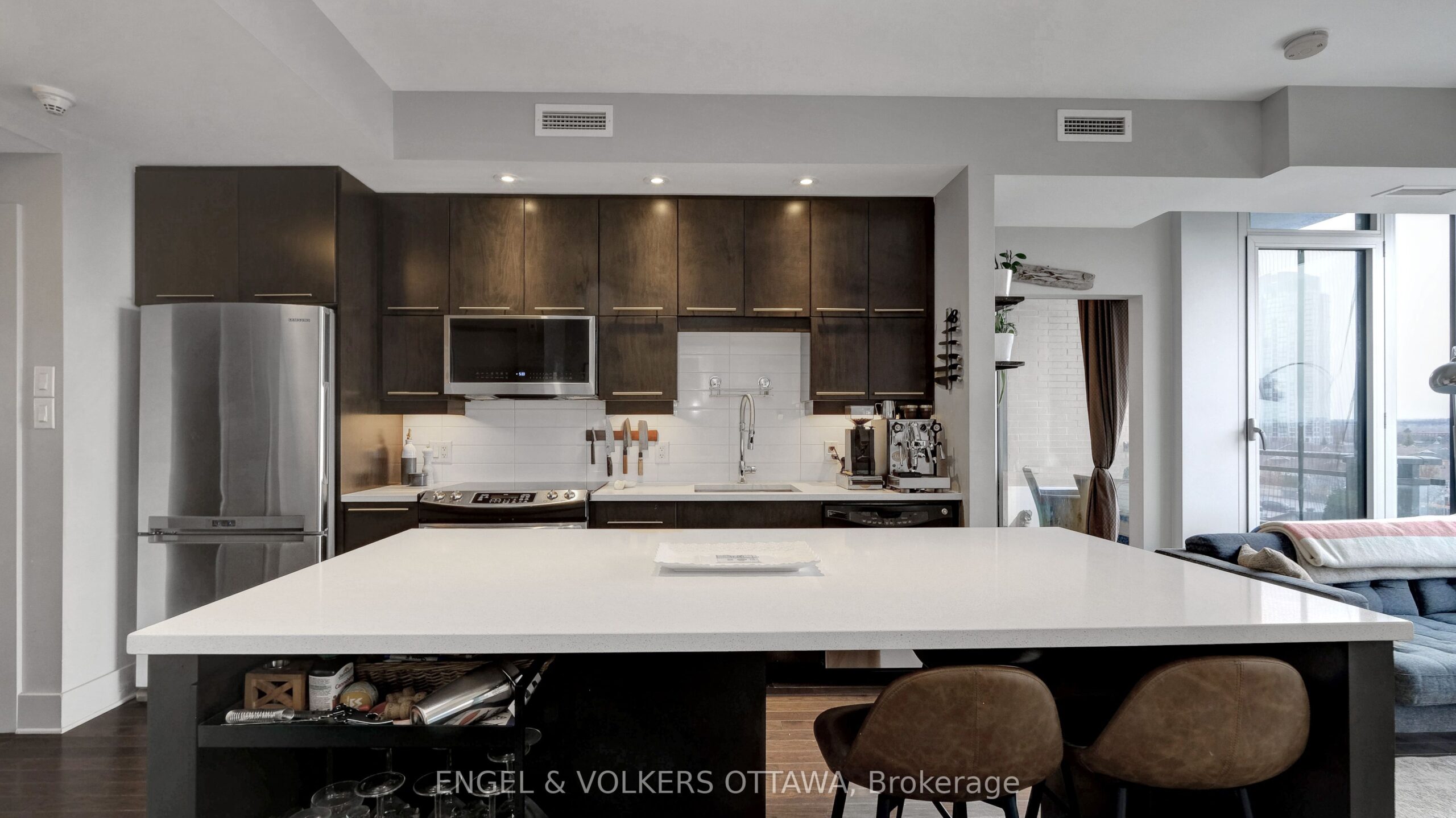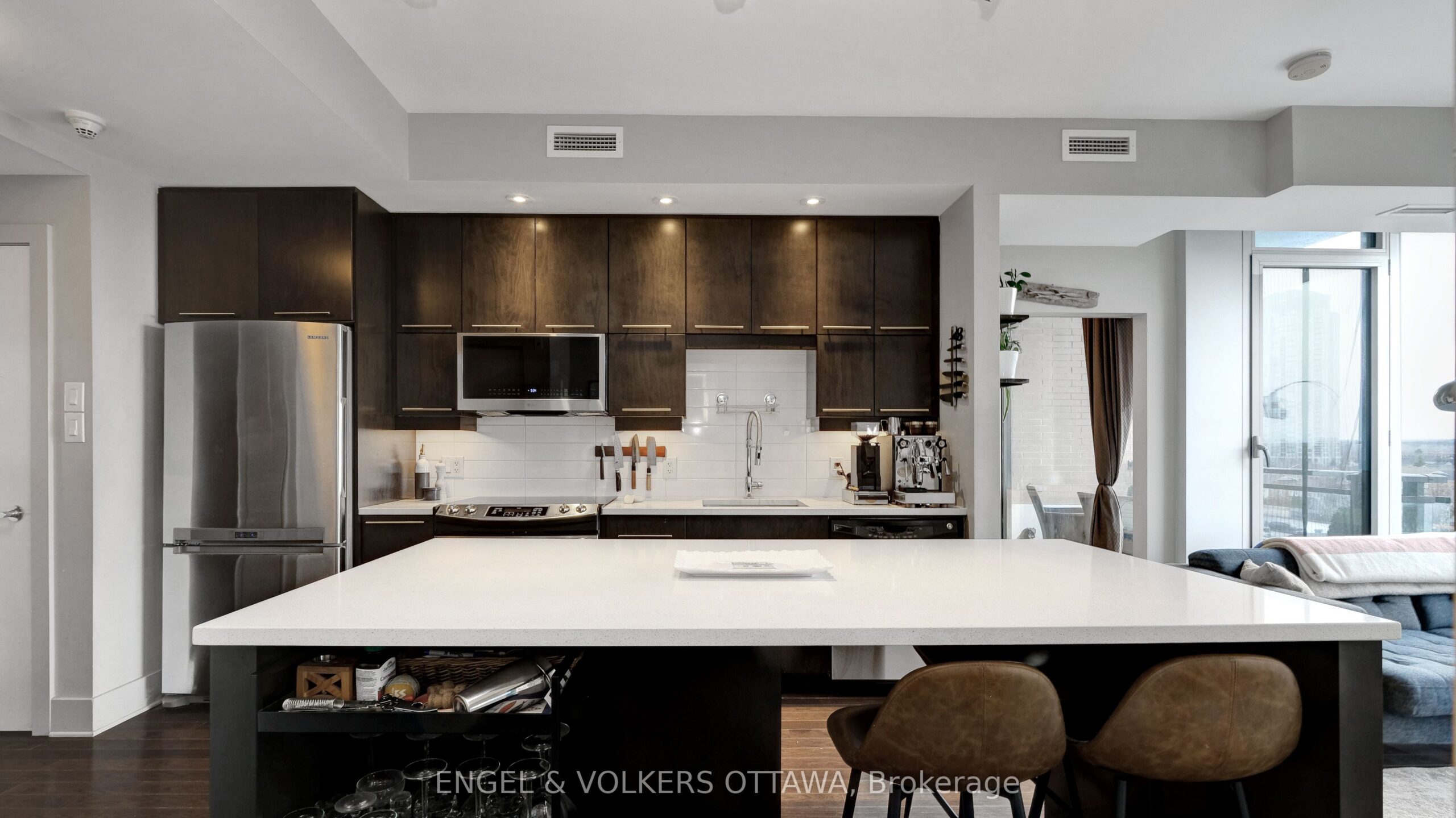 Welcome to Suite 509 at 101 Richmond Road, a beautiful 2 bedroom, 2 bathroom condo ideally situated in the heart of Westboro. This well-designed unit offers a bright, open-concept layout with modern finishes, balancing everyday comfort with functional living. Past the spacious entry, the kitchen is thoughtfully laid out with sleek cabinetry, a large island, quartz countertops, tile backsplash, and stainless steel appliances, flowing seamlessly into the bright and inviting living room. Large windows flood the unit with natural light and offer beautiful views of the Gatineau Hills. Hardwood flooring runs through the main living areas, with tile in the bathrooms, and the unit features a clean, modern aesthetic throughout. Both bedrooms are well sized, including a primary suite with its own en-suite bathroom, offering privacy and functionality. The spacious balcony provides extra room to lounge, relax and enjoy the outdoors. Located in one of Ottawa’s most sought-after neighbourhoods, you’re just a short walk to shops, cafés, restaurants, and the Ottawa River pathways. Building amenities include a fitness centre, party room, theatre room, rooftop terrace, and car wash bay. Unit includes one underground parking space, one storage locker, and a bike rack. This is great value and urban living done right! Minimum 1-year lease, subject to credit and reference checks, and requires proof of income or employment and valid government-issued ID.