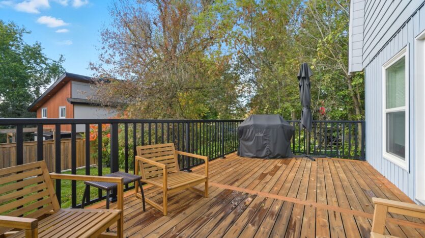 Situated in the community of Musselman’s Lake in Whitchurch-Stouffville in close proximity to amenities and urban areas; updated – 3 bedroom 2.5 bath; easy commuting distance into urban Region of York and Durham; airy and spacious main floor- bright kitchen with good counterspace and ample cabinetry, centre island and walkout to lovely entertaining sized deck overlooking yard; primary bedroom with renovated 5pc ensuite bath; updated 4 piece family bath; recreation room and utility room in basement . Walking distance to the lake and park. Recent updates include gas furnace/central air +/- 2015; 200 amp electrical 2025; roof Cambridge Laminated Fiberglass shingles +/- 2022; vinyl thermal windows +/- 2023; updated 5pc primary ensuite; 4 pc updated family bath; 2pc main floor powder room with space for stacking washer/dryer; Family friendly area – move in and enjoy!