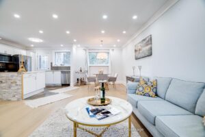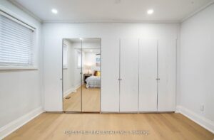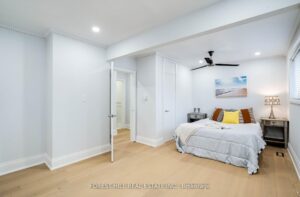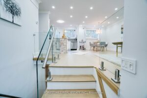 Solid brick bungalow tastefully updated in 2022, offering a bright open layout on a wide 70-ft lot. The fully fenced backyard is large enough for a pool and surrounded by mature trees, providing privacy and excellent possibilities for future use or redevelopment. Renovations completed in 2022 include engineered hardwood flooring, pot lighting, modern glass and stainless-steel railings, fresh paint, and solid wood crown moulding and trim. The kitchen is equipped with stainless-steel appliances and opens directly to a generous deck, making outdoor dining and gatherings easy. The main floor currently features two well-sized bedrooms (previously three and can easily be returned to its original layout) along with a 3-piece bathroom. The finished basement adds three more bedrooms, another 3-piece bath, and plumbing rough-ins that could accommodate a future kitchen.