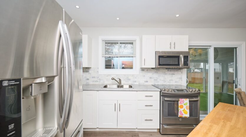 [property_description]Solid all-brick bungalow with many upgrades and over 1,200 square feet on the main level and a layout that offers both comfort and potential. This 3-bedroom home features a bright kitchen with a dining area and sliding doors leading to a sunroom, and complete with additional sliding doors to the backyard. The spacious living room includes a cozy wood-burning fireplace and large front window, while the main floor also offers a full 5-piece bathroom and three generously sized bedrooms, ideal for main-level living. The basement is a clean slate with a partially finished layout that includes a large recreation area, laundry room with sink, a roughed-in 3-piece bath that currently has a working toilet, roughed-in kitchen, and a separate side entrance, making it a great candidate for a future in-law suite. Recent updates include new windows, kitchen, bathroom and main-level paint, trim and flooring (2021), high-efficiency furnace (2018), eavestroughs(2019), and garage roof and door (2021). Outside, enjoy a charming front porch, double-wide driveway, and a detached 2-car garage on a partially fenced lot with lawn space perfect for kids, pets, or backyard entertaining. It is conveniently located within walking distance to all amenities, Niagara College, multiple plazas with shopping, fast food, public transit, and schools, and minutes to the Welland Canal, Seaway Mall, Welland’s commercial district, and easy access to the Hwy 406. A great opportunity for families, investors, or first-time buyers looking to settle in a revitalizing neighbourhood.[/property_description]