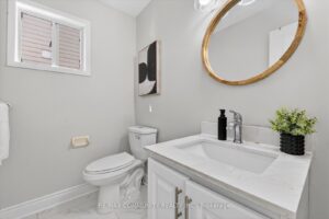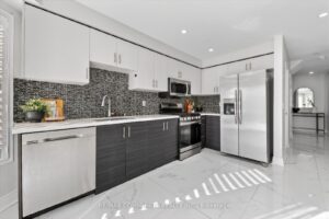 North facing detached double garage home in the community of Williamsburg. Convenient location within minutes to Bus route, Hwy 412 & 407. Fully renovated kitchen (2022) , New engineered hardwood and tiles on main floor (2022) , Large deck and New concrete patio (2022), New kitchen cabinets, quartz counters, backsplash and appliances (2022) Interior and exterior pot lights (2022), Roof (2017) , Broadloom(2022), Just painted (2026)