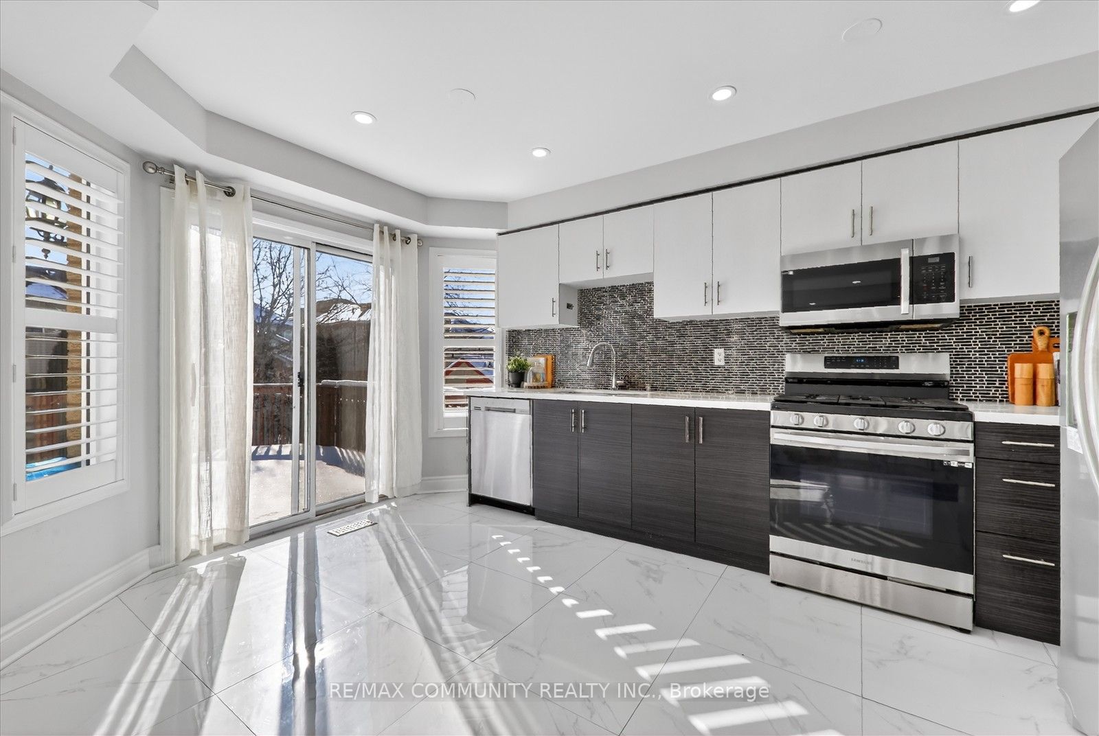 North facing detached double garage home in the community of Williamsburg. Convenient location within minutes to Bus route, Hwy 412 & 407. Fully renovated kitchen (2022) , New engineered hardwood and tiles on main floor (2022) , Large deck and New concrete patio (2022), New kitchen cabinets, quartz counters, backsplash and appliances (2022) Interior and exterior pot lights (2022), Roof (2017) , Broadloom(2022), Just painted (2026)