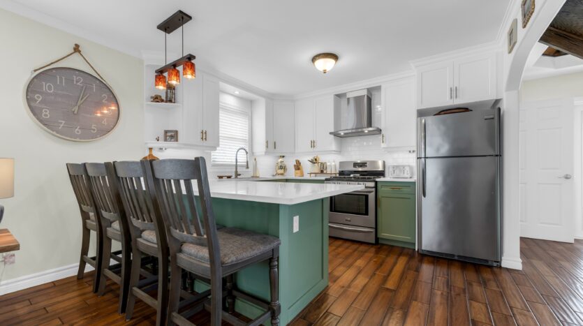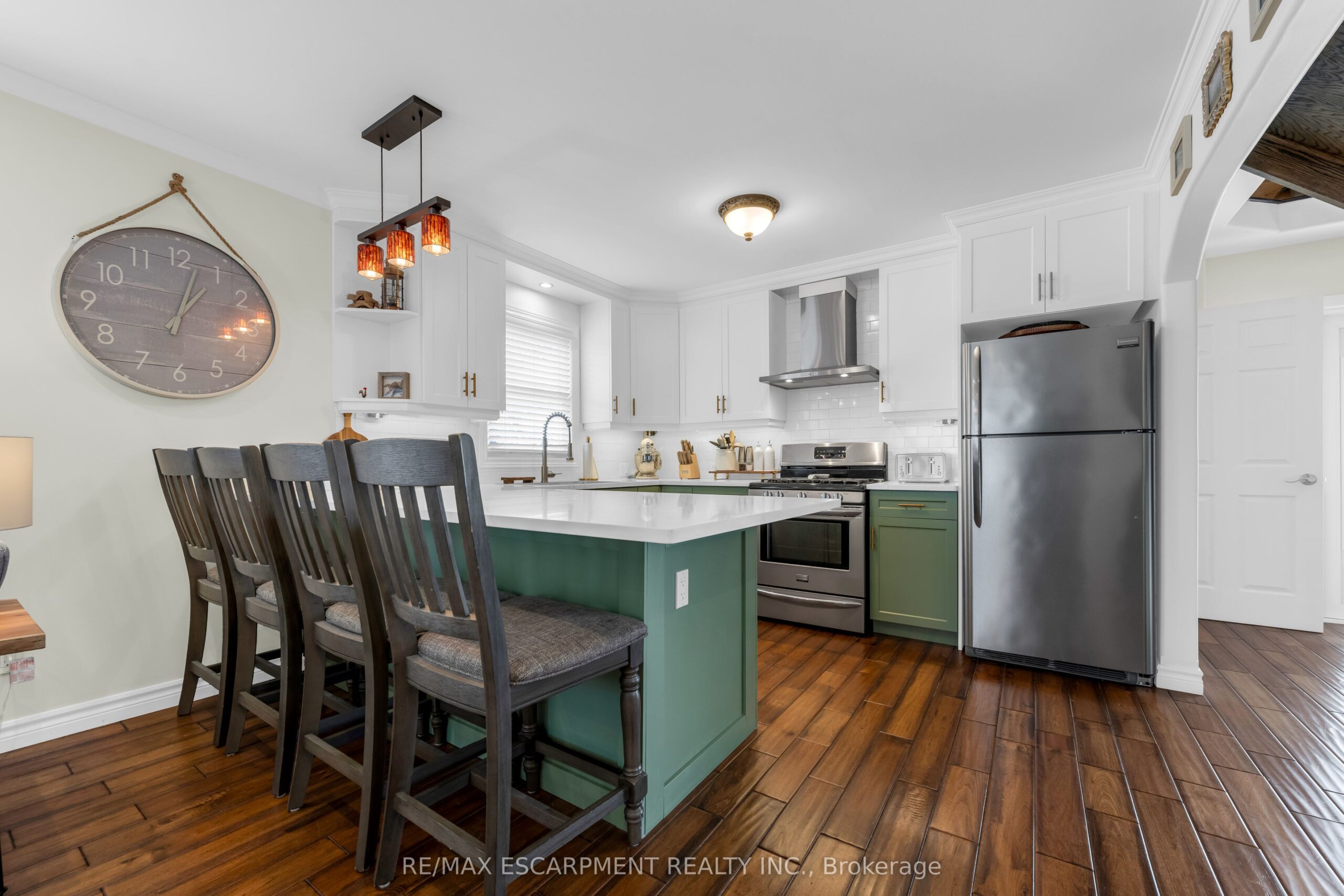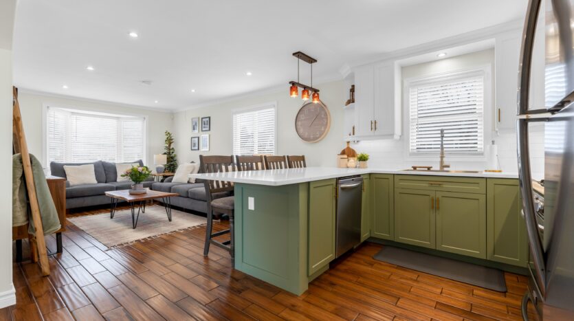 Simply stunning, this beautifully appointed home showcases quality craftsmanship and luxurious updates throughout. From the moment you arrive, the pride of ownership is unmistakable, with charming curb appeal and a sense of care carried through every inch of the property. Inside, experience a home that truly feels even better in person. Meticulously maintained & thoughtfully updated, the interior blends modern style with everyday comfort. The open-concept main floor flows effortlessly, featuring rich flooring, crown moulding, recessed lighting, & expansive windows that fill the space with natural light, creating an inviting atmosphere. At the heart of the home, the stunning updated kitchen (2024) is both functional and beautiful, with updated cabinetry, quartz countertops, a sleek backsplash, soft-close cupboards & accent lighting – designed to impress w/ an added coffee station for convenience! Primary bedroom on main level and a spa-inspired 4-piece bathroom with a luxurious shower system complete the main level. A grand staircase guides you to the upper level, where a sunlit sanctuary awaits. Four skylights fill the spacious bedroom with natural light, complemented by LED lighting and a charming office nook – ideal for working from home. The fully finished basement offers a bright and welcoming environment from large windows and with 2 tone ambient lighting. Here you’ll find a comfortable rec room, an additional bedroom, a beautifully finished 4-piece bathroom, and a clean, well-organized laundry space designed for practicality + additional storage space. Step outside to a private backyard featuring a quality-built private fence (2023), large deck overlooking an expansive yard – perfect for entertaining or relaxing – with a garden shed for extra storage. Addt’l highlights include 200 amp service. Complete in 2024: Finished Basement, Driveway , Kitchen update and A/C! Close to all major amenities & hwy access! Turn-key & exceptional… A MUST SEE! Don’t miss out!