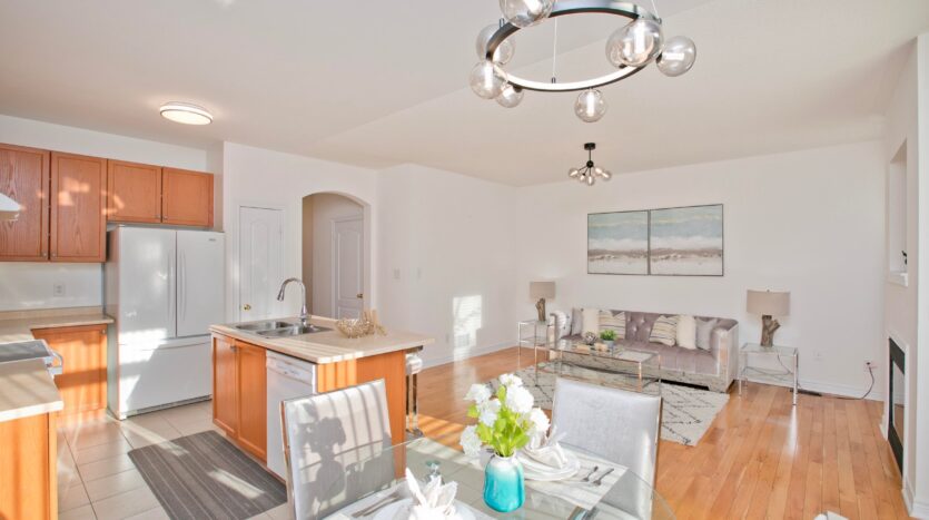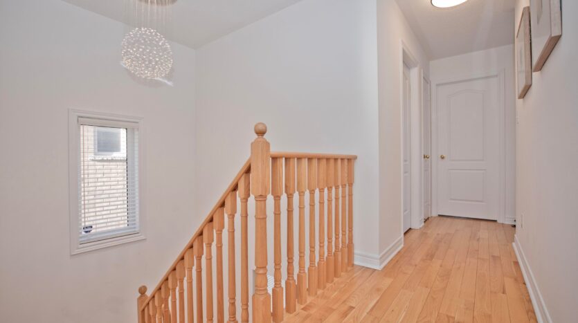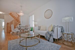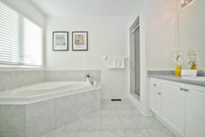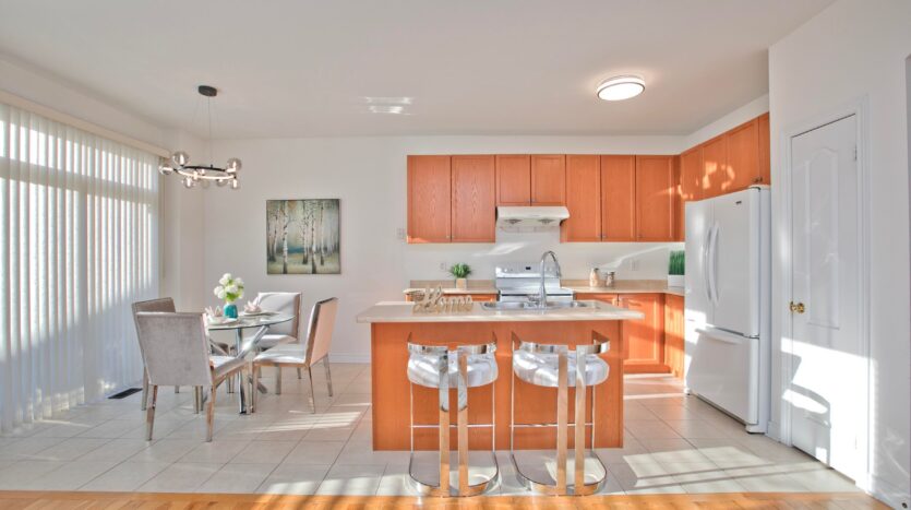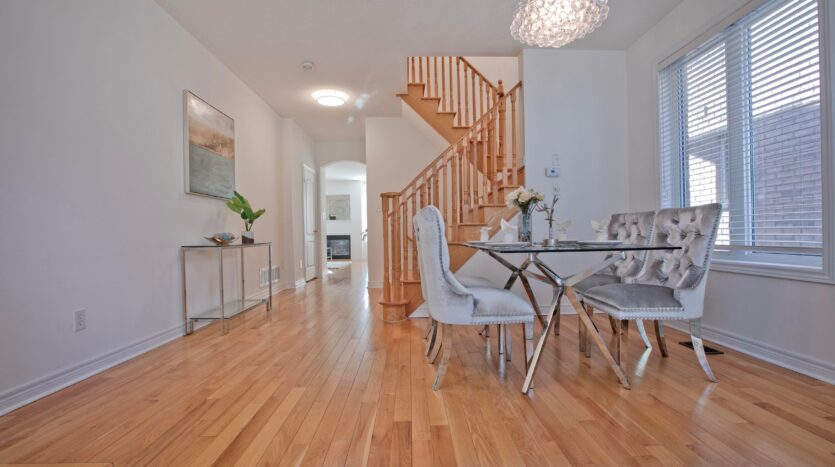 Welcome to this Well-maintained, move-in-ready 4-bedroom link home in the highly sought-after Wismer community. Proudly owned by the original owner and featuring a warm, functional layout. Main floor offers 9 ft ceilings, hardwood flooring throughout, new modern lighting, and a well-kept eat-in kitchen with a newer stove. Convenient sunken laundry on the main floor and direct access to the garage. Link garage for added privacy, and driveway fits 2 small cars. Second floor features balcony access through elegant French doors and a spacious primary bedroom with a 5-piece ensuite bathroom. Bright and generous bedrooms throughout. Located in a top-ranked school district. Close to parks, shopping, transit, and all amenities. A perfect home for families seeking comfort and convenience in a prime Markham location.
