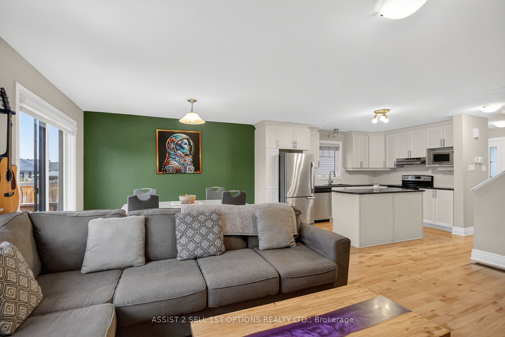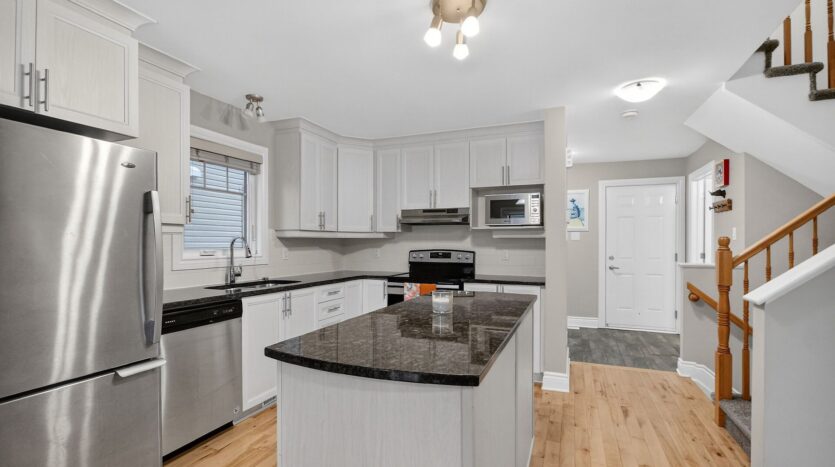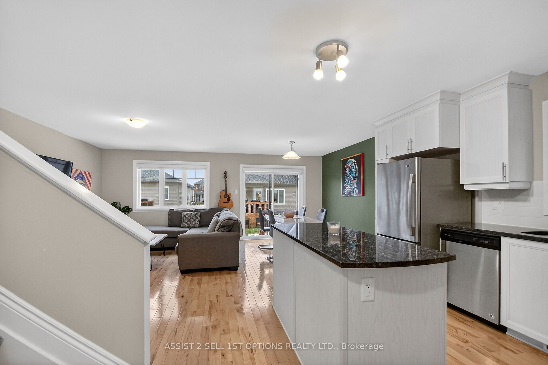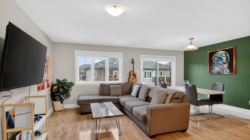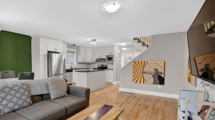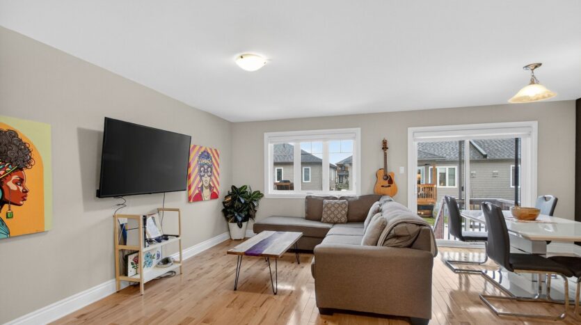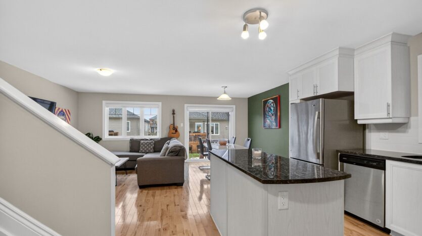 Welcome to 355 Twilight Ave in the sought-after Sunset Flats area of the Town of Russell-an exceptional END -unit townhome widened by 4 ft. and offering nearly 1,400 sq ft on the main level plus a finished basement . This bright 3-bedroom home features a welcoming foyer with ceramic floors and double closet, a modern kitchen with granite countertops, crown moulding above cabinets, stainless steel appliances, and hardwood flooring throughout the main level. The living and dining areas are filled with natural light from large, bright windows. The spacious primary bedroom with two closets and well-sized secondary bedrooms are complemented by a main bathroom with double sinks. The finished basement offers a large rec room and full bath, plus a unique separate door providing excellent rental or in-law suite potential. Close to parks, schools, shopping, trails, and community amenities, with easy access to downtown Ottawa.