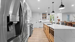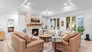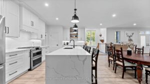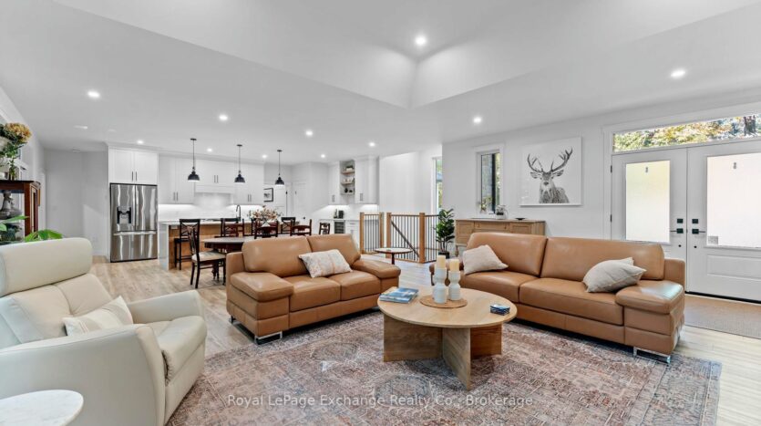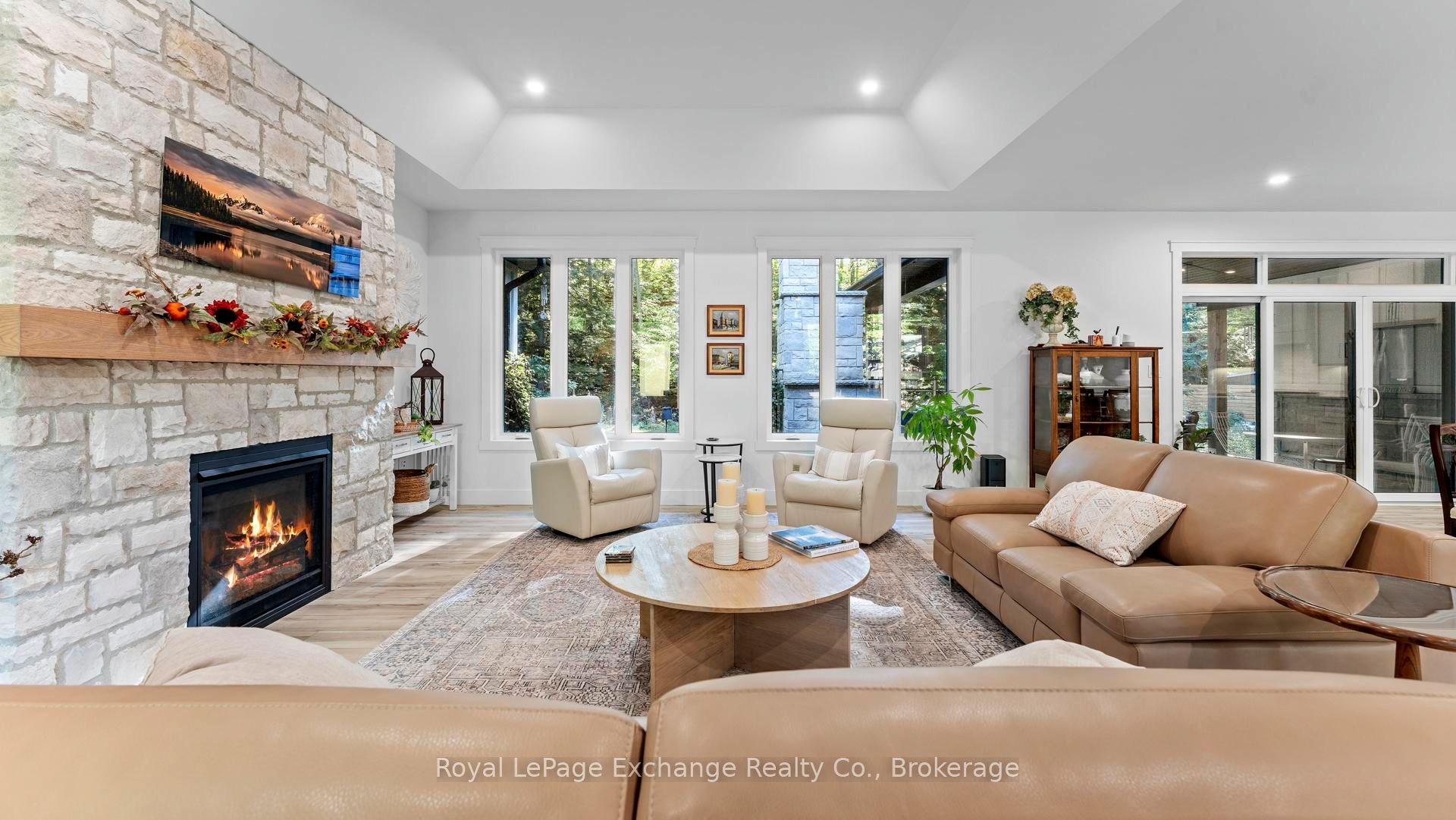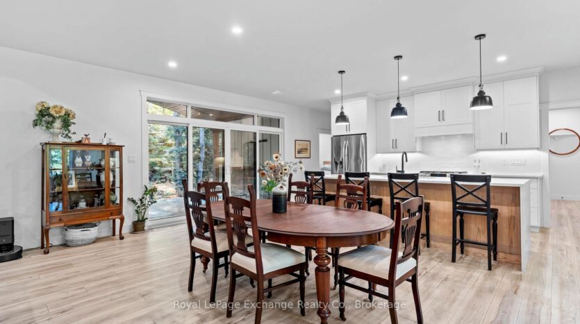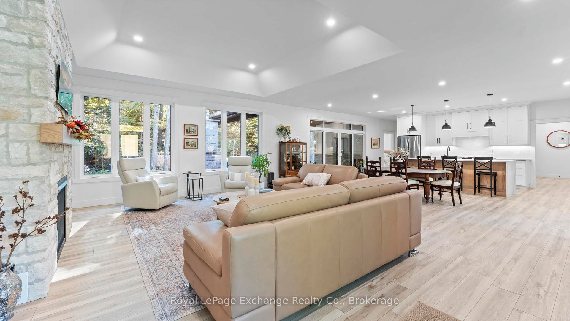 Welcome to 44 Blairs Trail serene retreat in the coveted lakeside community of Blairs Grove, where sandy shores and breathtaking sunsets over Lake Huron are just steps from your door. This 2021 custom-built bungalow, offers more than 3,400 sq. ft. of finished living space with 2,050 sq. ft. on the main floor and another 1,350 sq. ft. in the finished lower level. Set on a private half-acre, this home is a rare blend of luxury, craftsmanship, and comfort. Inside, soaring 9-foot ceilings on the main floor and oversized windows create a bright, open atmosphere. At the heart of the home, the chef-inspired kitchen boasts quartz countertops throughout, a 10-foot waterfall island, custom cabinetry, and a spacious walk-in pantry. The space flows seamlessly into the dining area and inviting great room with a cozy gas fireplace, then out to the covered rear deck (19 26)where a stone wood-burning fireplace and natural gas BBQ hookup invite year-round entertaining. The primary suite offers privacy and tranquility, while two additional bedrooms and a 4-piece bath create a separate guest wing. The lower level expands the living space with a recreation room, gas fireplace, billiards area, full bath, and two framed bedrooms allowing for up to six bedrooms in total. Every detail reflects superior construction: 9-inch poured concrete foundation walls, 2×6 framing with insulated sheathing for true thermal break, R-27 insulated walls, R-60 ceiling insulation, and 50-year Timberline shingles. The exterior shines with LP Smart Side maintenance-free Board and Batten siding accented by stone, and a fully fenced backyard with custom wrought iron railings. Just minutes from Kincardines amenities, dining, trails, and shops but tucked into a peaceful, tree-lined neighbourhood this home offers the perfect balance of modern functionality and lakeside serenity.44 Blairs Trail is more than a home its a lifestyle where quality, comfort, and coastal beauty come together.