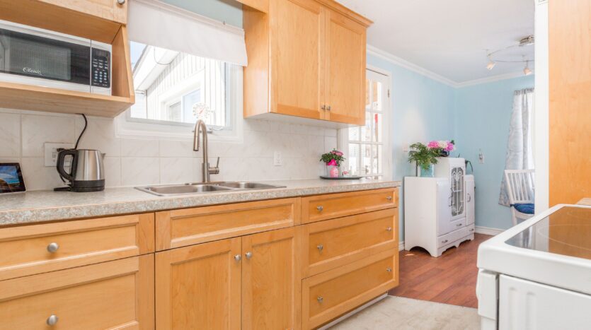 Welcome to easy, comfortable living in the heart of Sandycove Acres – a warm and welcoming adult community designed for your next chapter. This bright and beautifully maintained 2-bedroom, 1-bath home offers 916 sq. ft. of thoughtfully designed space, just a short stroll to the rec centre, swimming pool & Pickleball courts. The inviting interior features modern decor & paint colours, crown moulding, updated maple kitchen, and a cozy gas fireplace – perfect for relaxing evenings at home. Laminate flooring flows through the main living areas, with comfortable carpeting in the bedrooms for added warmth. Enjoy peaceful mornings in the sunroom, entertain on the private multi-tiered deck and appreciate the convenience of an attached storage shed. With newer windows, forced air gas heating, and central air, comfort is assured year-round. Ideally located near Lake Simcoe, Innisfil Beach Park, South Barrie GO, shopping and Highway 400, you’re close to everything you need while enjoying a peaceful setting. Residents of Sandycove Acres enjoy access to two heated outdoor pools, three community centres, gym, woodworking shop, shuffleboard and pickleball courts, along with a wide variety of clubs and social activities. This is more than a home – it’s a lifestyle built around comfort, connection, and carefree living.