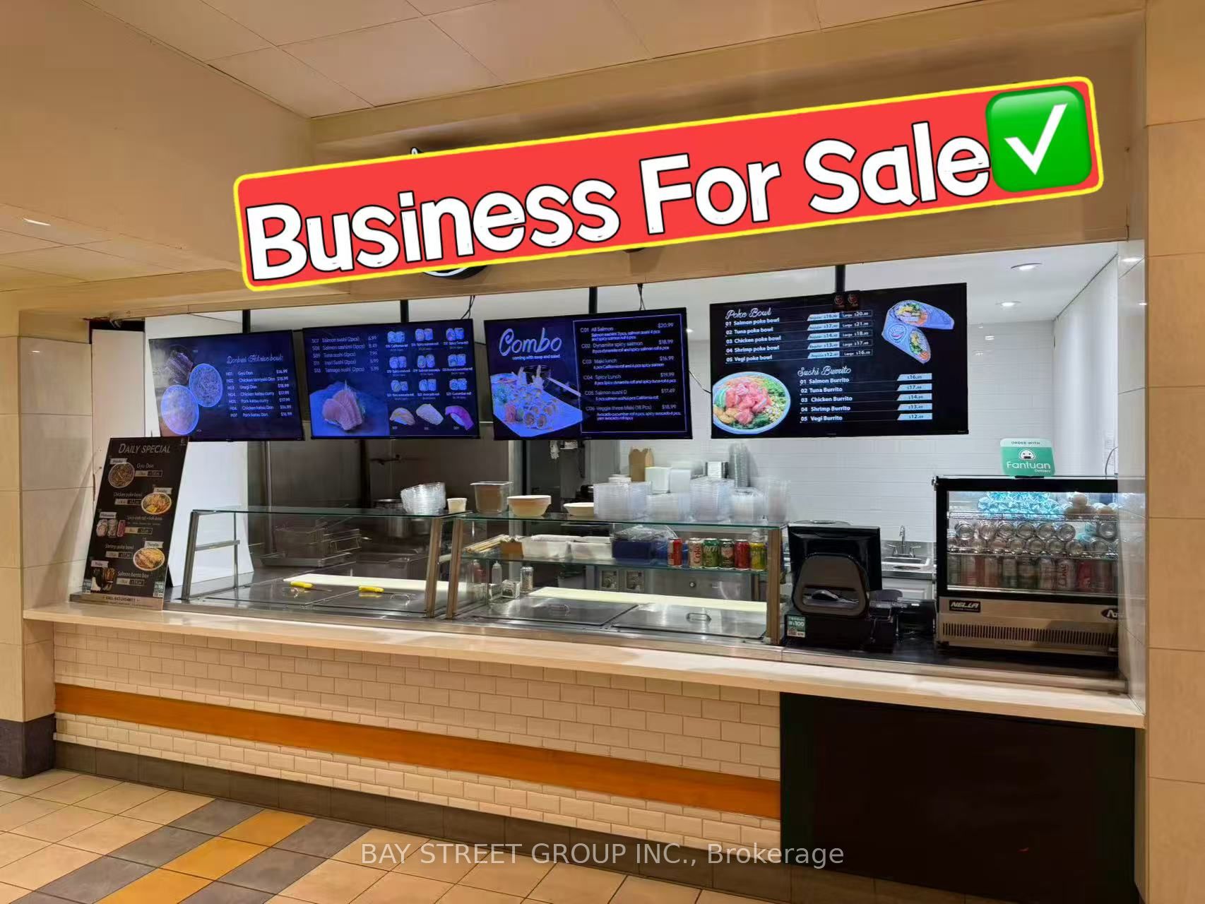 Well Established Sushi & Poke Business At The Food Court Of Atrium On Bay, Located In The Busiest Intersection Of Dundas And Bay Street! Corner Unit With Lots Of Exposure, Dine-In And Take-Out Options Available, Walking Distance To Yonge/Dundas Square With Connection To Path (Toronto’s Busiest Underground Pedestrian Walkway). Within Minutes From Universities, Offices, Eaton Centre, And Ton Of Pedestrians! Open Concept Dine-In Area. All Equipment Is Owned, No Leases On Equipment! Strong Sales, Low Costs! Huge Delivery Potential To Continue As Current Type Of Business Or Bring Your Own Concept! Endless Opportunities Here.