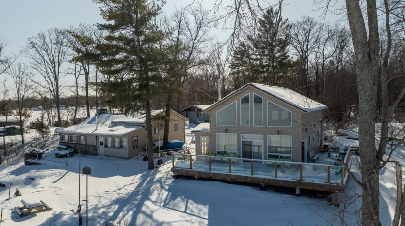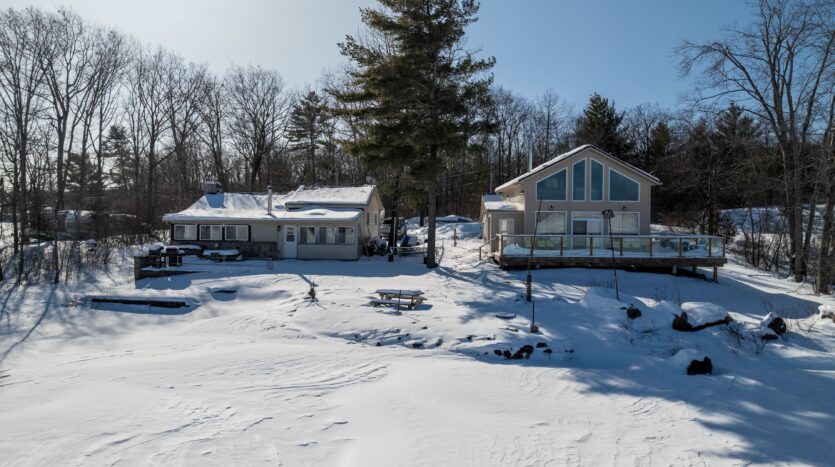 Set against the stunning backdrop of Stoco Lake, this exceptional property offers not one, but two fully winterized, year-round residences, providing the perfect blend of togetherness and privacy. Imagine waking up to panoramic lakefront views from either of these 2 year-round, turn key homes on one gorgeous rocky point on the west shore of Stoco Lake. Discover the Ultimate multi-generational compound or investment opportunity just minutes south of Tweed. The first residence, a modern bungaloft built in 2017, features floor to ceiling windows, 3 spacious bedrooms and 2 pristine bathrooms. The second residence is a cozy retreat with 2 bedrooms and 2 bathrooms, including a 3 piece ensuite. While distinct in layout, both homes share a commitment to quality and comfort. Each home boasts its own chef-inspired kitchen and roaring wood-burning fireplace. Whether you’re trying to catch one of Stoco’s famous Muskies or you’re gliding on skates across the frozen lake, the panoramic lake views from both homes are nothing short of breathtaking. For the handyman or visionary, the property features a bonus bunkie equipped with its own kitchen and 3-piece bathroom. It needs work, but offers incredible potential as a guest suite, studio, or teen hangout. So if you’ve been mathing with me, that’s 6 bedrooms and 5 bathrooms in 3 living spaces on one premium waterfront property just south of Tweed. Located on a private road maintained year-round, you enjoy the peace of seclusion with the convenience of being just minutes from town amenities. Whether you are looking for a family legacy property or you’re expanding your vacation rental portfolio, this Stoco Lake gem is a rare find.