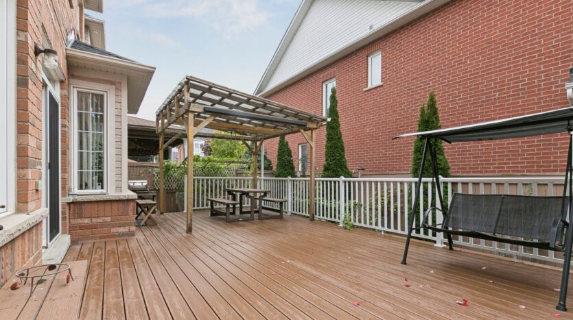 [property_description]Move in ready! Has everything for your comfortable living. Freshly painted, renovated flooring, new gas stove, new back splash. Renovated bathrooms. Finished basement with kitchen, appliances & space for laundry. New asphalt shingles( 3 years old), new furnace, owned tankless water heater, new A/C. New wooden flooring. Home is completely carpect free. Deck is 26 x 16 with gazebo. Aluminum railing and landscaped back yard. Mature trees provide privacy and ravine like feeling. Front yard is spacious and lush green. There are six total parking spots. Pot lights in basement, Kitchen, dining, family and living rooms. Community pools, leisure centre, Go Station, public transit and prestigious school within walking distance. Many children’s parks and trails just a 3 minute walk. Peacefull neighbourhood to raise a family. This is a very elite neighbourhood in York region. Lots of amenities, Hospital, parks, trails & community facilities all within walking distance.[/property_description]